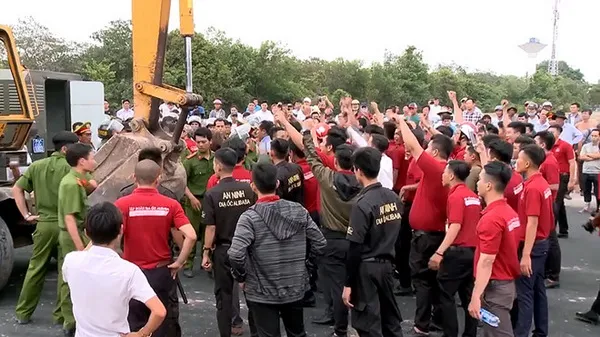 Rất đông người mặc áo có dòng chữ "Tập đoàn địa ốc Alibaba" chống đối chính quyền - Ảnh: TNO