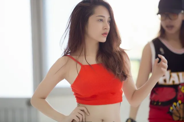 Ngoài thể hiện chuyên nghiệp, nghiêm túc trên sàn tập, giọng hát “Lần đầu” còn tự tin khoe eo thon, dáng chuẩn.