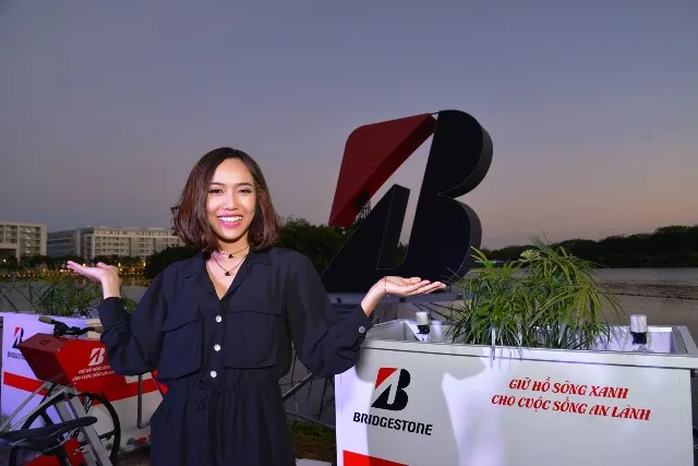 Minh Hằng đồng hành cùng chương trình đạp xe lọc nước.