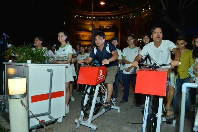 Hoạt động đạp xe lọc nước kéo dài từ 23/4 đến hết ngày 30/4/2016 tại Hồ Bán Nguyệt (Ngã 3 Tôn Dật Tiên – Hoàng Văn Thái), Quận 7, TPHCM.