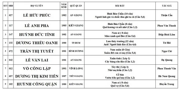DANH SÁCH THÍ SINH THI VÒNG BÁN KẾT (Buổi 12)