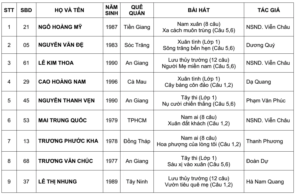 Buổi thi sẽ là cuộc tranh tài của 9 thí sinh đến từ các tỉnh, thành miền Đông và Tây Nam Bộ.