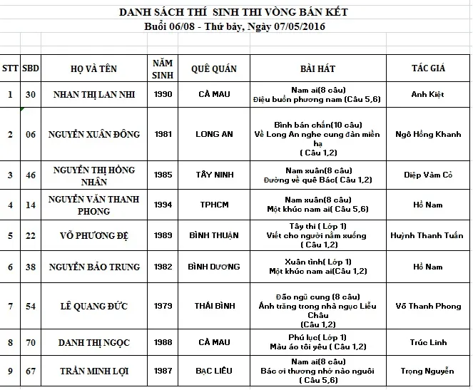 Ban giám khảo buổi thi hôm nay, gồm có: Thạc sĩ Huỳnh Khải, Soạn giả Minh Thùy, Nhạc sỹ Văn Ngọc và NSƯT Lê Tứ