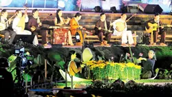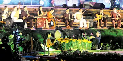 | Tái hiện đờn ca tài tử trên sông nước Nam bộ trong buổi lễ. Ảnh: SGGP |
