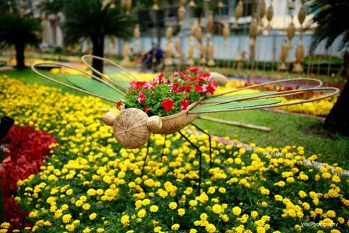 Đường hoa năm nay có chiều dài 670 m, từ trước trụ sở UBND TP đến giao lộ Tôn Đức Thắng.