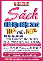 (VOH) - Từ ngày 6/7 đến ngày 15/7, tại Nhà Triển lãm Thành Phố, số 92 đường Lê Thánh Tôn, Q.1, TP.HCM, Công ty FAHASA tổ chức Đợt phát hành sách giá đặc biệt 2012 với quy mô lớn nhất. FAHASA sẽ đồng loạt giảm từ 10% cho các loại sách mới đang phát hành, giảm từ 20% đến 50% cho tất cả các loại sách đang trưng bày và bán tại Hội sách với hơn 60.000 tên sách quốc văn, ngoại văn với nhiều thể loại.