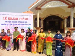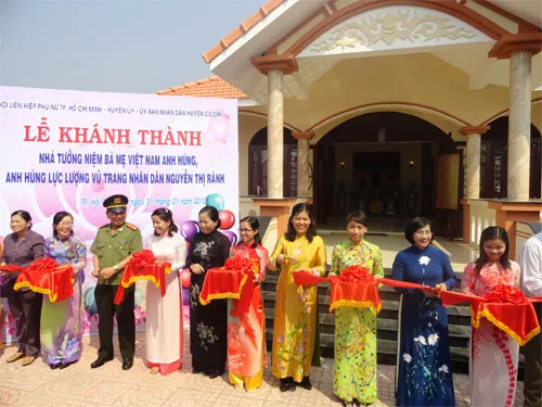 | Các đại biểu cắt băng khánh thành Nhà tưởng niệm Mẹ Việt Nam Anh hùng - Anh hùng LLVTND Nguyễn Thị Rành. Ảnh: Th.Nga |