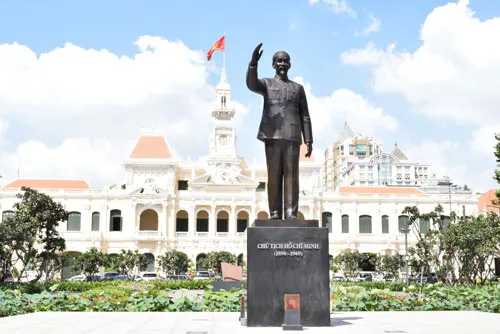 Tượng đài Chủ tịch Hồ Chí Minh trước UBND thành phố - Ảnh: TNO.