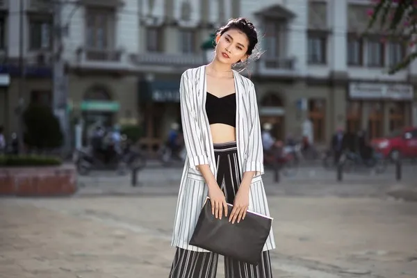 Sự phối hợp sọc tương phản biến hóa đa dạng khi mặc cùng áo khoác lửng hoặc dài mang đến vẻ đẹp năng động và trẻ trung cho cô nàng khi xuống phố hay gặp mặt các NTK.