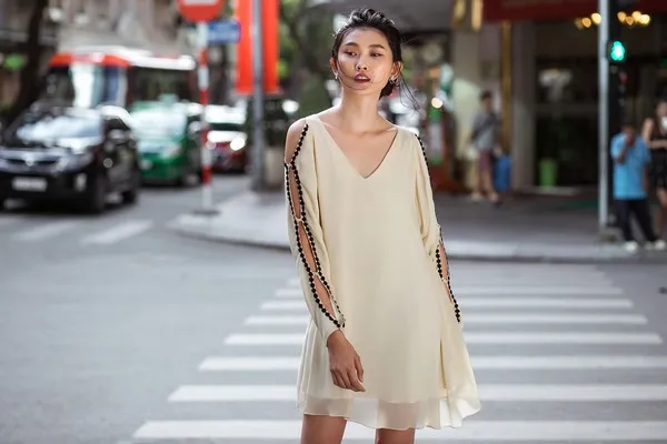Sự nhẹ nhàng từ chất liệu và chi tiết khoét tay áo viền đăng ten đặc sắc tạo nên sự quyến rũ đến ngỡ ngàng