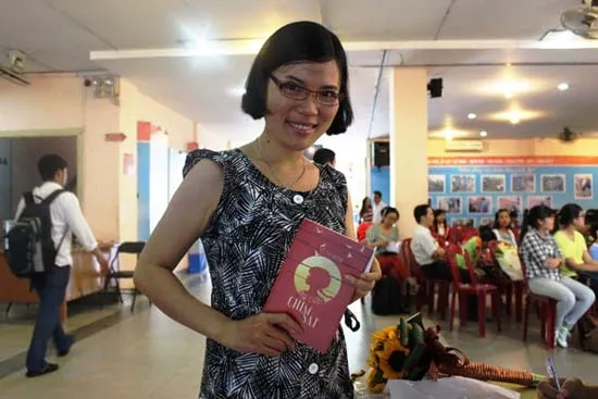 Tác giả Võ Thu Hương cùng với quyển sách “Nụ cười Chim Sắt”. Ảnh: muctim