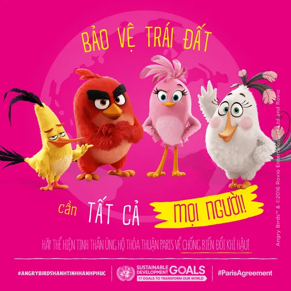 “Các nhân vật Angry Birds đã đem đến niềm vui cho hàng triệu người trên thế giới và bây giờ họ đã thực sự là một phần của công cuộc cải thiện thế giới này. Song hành với vị đại sứ lông vũ đồ họa trong quá trình nâng cao nhận thức của mọi người về chống biến đổi khí hậu và kiến tạo một tương lai an toàn, ổn định và hạnh phúc hơn chính là cách tuyệt vời nhất để đánh dấu Ngày Quốc tế Hạnh phúc năm nay” – Tổng thư ký Ban Ki-Moon chia sẻ.
