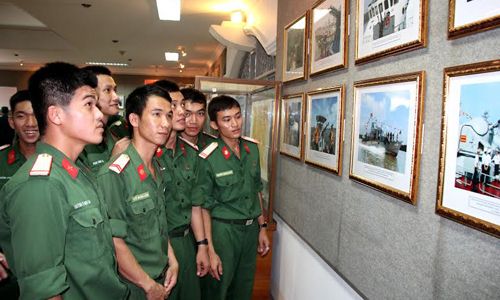 Các chiến sĩ tham quan triển lãm (Ảnh: VOVGT)