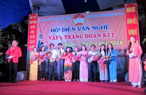 Với chủ đề “Bài ca kết đoàn”, những tiết mục ca múa nhạc, cải lương đến từ các đội văn nghệ, các Câu lạc bộ đờn ca tài tử của huyện Bình Chánh và các ca sĩ, nghệ sĩ chuyên nghiệp đã mang đến những thông điệp tự hào về tinh thần khối đại đoàn kết toàn dân tộc, lan tỏa những giai điệu ngợi ca công lao to lớn của Đảng và Bác Hồ, đồng thời phản ánh sự khởi sắc, phát triển từng ngày của quê hương Bình Chánh, của Thành phố và đất nước.