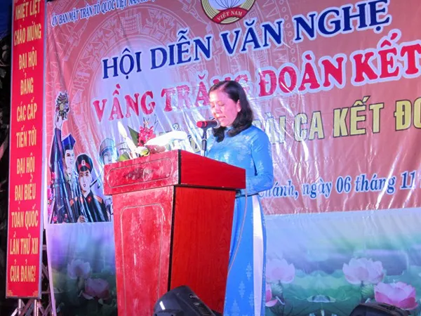 Bà Huỳnh Thị Kim Xuyến -Chủ tịch Mặt trận Tổ quốc Việt Nam huyện Bình Chánh phát biểu khai mạc hội diễn