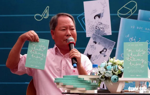Tác giả Vũ Đức Sao Biển giới thiệu tập sách được xem là đúc kết cả một đời làm báo với nhiều cuộc tiếp xúc cùng các bạn trẻ ngày 15/4/2018 tại TPHCM (Ảnh: L.ĐIỀN/TTO)