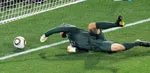 | Pha bắt bóng thiếu chắc chắn của Green dẫn đến bàn thua của đội Anh. |