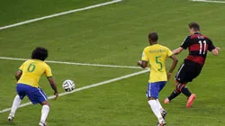 Từ quả phạt góc bên phải (theo hướng tấn công của Đức) của Toni Kroos, hàng hậu vệ Brazil để xổng Thomas Mueller để tiền vệ này dễ dàng đệm bóng cận thành mở tỷ số trận đấu ở phút 11.
