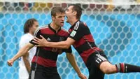 Mueller ăn mừng bàn thắng vào lưới tuyển Mỹ.
