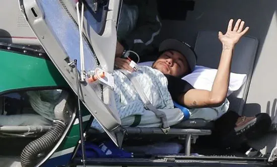 Neymar dính chấn thương nặng đốt sống lưng sau cú vào bóng mạnh của hậu vệ Juan Zuniga ở phút 88 trận tứ kết Brazil thắng Colombia 2-1.
