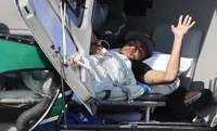 Neymar vẫy tay chào đồng đội, rời trại huấn luyện của Brazil bằng máy bay để đến bệnh viện điều trị chấn thương.