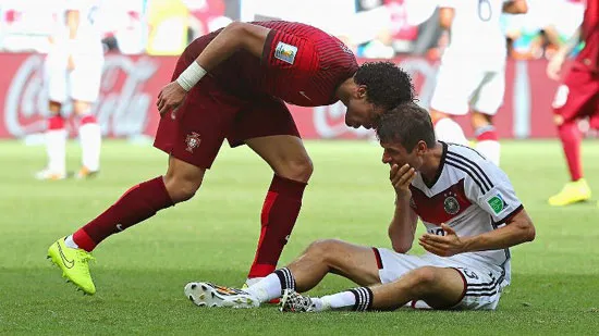 Bàn thua thứ 2 chưa phải là điều tội tế nhất đến với Bồ Đào Nha mà "thảm họa" đến với Ronlado và đồng đội ở phút 37: trung vệ Pepe bị phạt thẻ đỏ sau pha va chạm với Thomas Mueller. Quyết định rút thẻ đỏ với Pepe bị xem là nặng tay vì hậu vệ Real Madrid phạm lỗi không nặng.