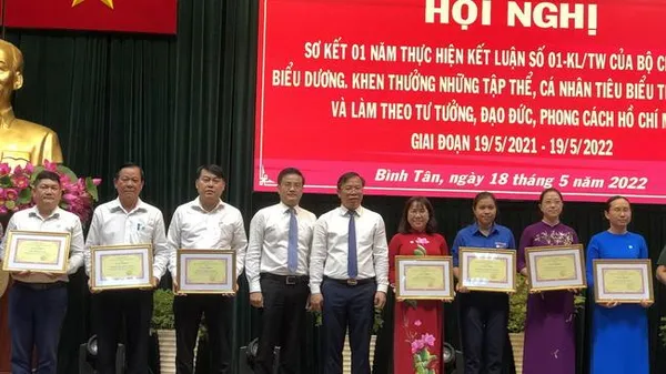 Học và làm theo tư tưởng, đạo đức, phong cách của Bác từ những điều giản dị nhất, tùy theo sức của mình, phù hợp chuyên môn, luôn gương mẫu đi đầu, không lùi bước trước hiểm nguy hay khó khăn, đoàn kết gắn bó cộng đồng. Đây chính là 131 tập thể và cá nhân tiêu biểu được Quận ủy Bình Tân tuyên dương trong học tập và làm theo tư tưởng, đạo đức, phong cách Hồ Chí Minh giai đoạn 19/5/2021- 19/5/2022 vào sáng 18/5.