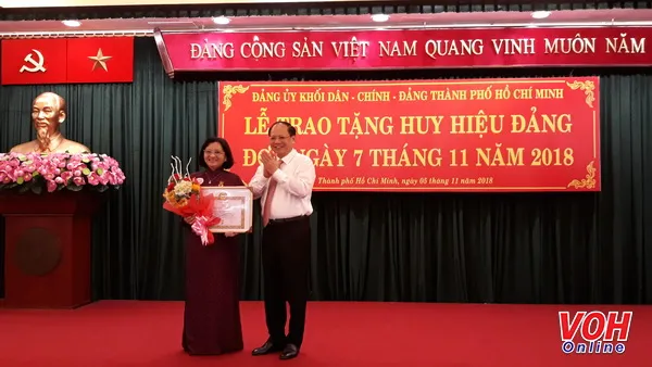 Tại buổi lễ, Đảng ủy Khối Dân - Chính - Đảng TP đã trao Huy hiệu Đảng đợt 7/11/2018 cho 15 đảng viên tròn 65, 55, 50, 40, 30 năm tuổi Đảng. Trong đó, có 1 đồng chí nhận Huy hiệu 65 năm tuổi Đảng, 2 đồng chí nhận Huy hiệu 55 năm tuổi Đảng, 1 đồng chí nhận huy hiệu 50 năm tuổi Đảng, 1 đồng chí nhận huy hiệu 40 năm tuổi Đảng và 10 đồng chí nhận Huy hiệu 30 năm tuổi Đảng.