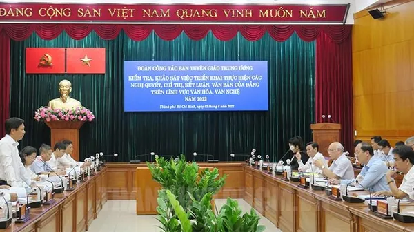 Báo cáo tại buổi làm việc, Ban Tuyên giáo Thành ủy TPHCM cho biết: sau 13 năm thực hiện các nghị quyết, chỉ thị, kết luận, văn bản của trên lĩnh vực văn hóa, văn nghệ, Thành phố Hồ Chí Minh đã đạt nhiều kết quả quan trọng trong xây dựng và phát triển môi trường văn hóa, hoạt động văn hóa, chú trọng xây dựng văn hóa cơ sở. Đời sống văn hóa, văn học, nghệ thuật của phố phát triển đa dạng, phong phú, theo hướng xây dựng thành phố có chất lượng sống tốt, văn minh, hiện đại, nghĩa tình.