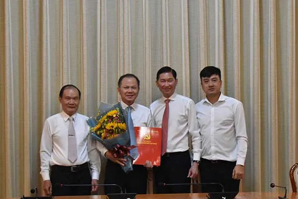 Phó Chủ tịch UBND TPHCM Trần Vĩnh Tuyến trao quyết định cho ông Đinh Ngọc Thắng