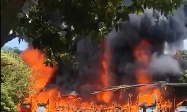 Ngọn lửa bùng phát dữ dội, kèm theo cột khói đen bốc cao hàng chục mét, gây hoảng loạn cho nhiều du khách và người dân xung quanh.