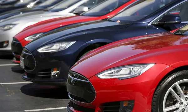 Một hàng xe Tesla Model S bên ngoài trụ sở chính của công ty tại Palo Alto, California ngày 30/4/2015 - Ảnh: Reuters