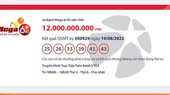 Ngoài giải kết quả quay số mở thưởng sản phẩm Mega 6/45 vào tối 19/8 còn có 76 giải nhất với 10 triệu đồng/giải, 1.922 giải nhì có trị giá 300.000 đồng/giải, cùng 26.349 giải ba với trị giá 30.000 đồng/giải.