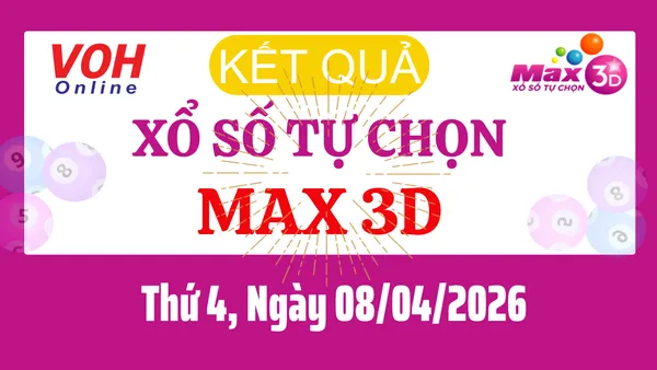 Kết quả xổ số Vietlott MAX 3D kỳ quay thưởng ngày 08/04/2026