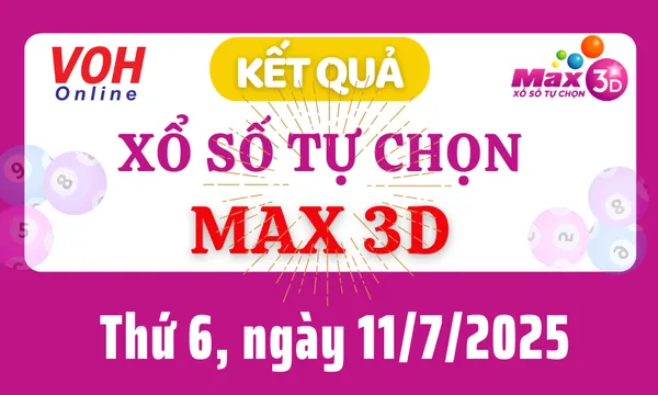 Kết quả xổ số Vietlott MAX 3D kỳ quay thưởng ngày 11/7/2025