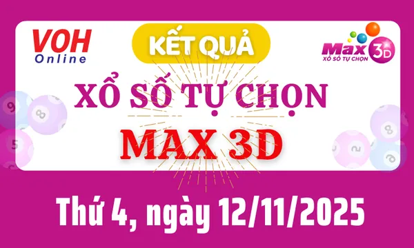 Kết quả xổ số Vietlott MAX 3D kỳ quay thưởng ngày 12/11/2025