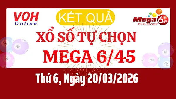 Kết quả xổ số Vietlott MEGA 645 kỳ quay thưởng ngày 20/03/2026