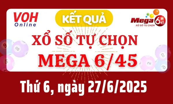 Kết quả xổ số Vietlott MEGA 645 kỳ quay thưởng ngày 27/6/2025