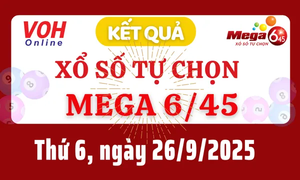 Kết quả xổ số Vietlott MEGA 645 kỳ quay thưởng ngày 26/9/2025