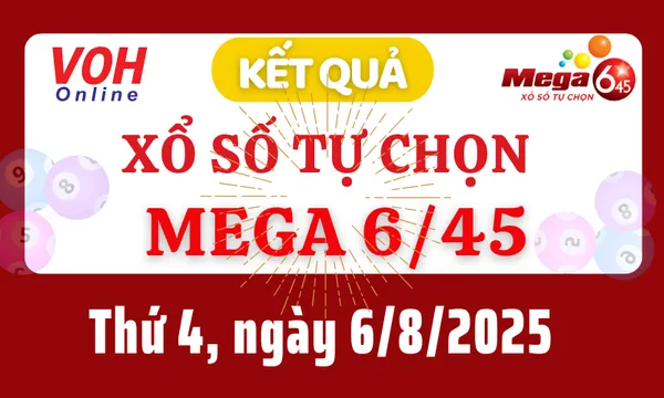 Kết quả xổ số Vietlott MEGA 645 kỳ quay thưởng ngày 6/8/2025