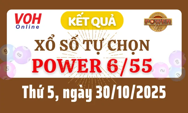 Kết quả xổ số Vietlott POWER 655 kỳ quay thưởng ngày 30/10/2025