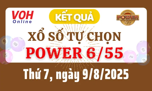 Kết quả xổ số Vietlott POWER 655 kỳ quay thưởng ngày 9/8/2025