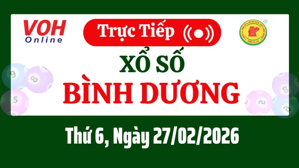Xổ số Bình Dương hôm nay 27/2/2026 được cập nhật trực tiếp lúc 16h10 từ trường quay.