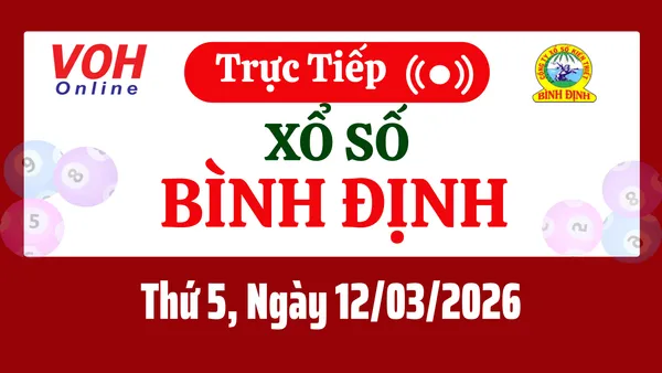 Xổ số Bình Định hôm nay 12/3/2026 được cập nhật trực tiếp lúc 17h10 từ trường quay.