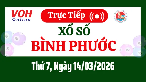 Xổ số Bình Phước hôm nay 14/3/2026 được cập nhật trực tiếp lúc 16h10 từ trường quay.