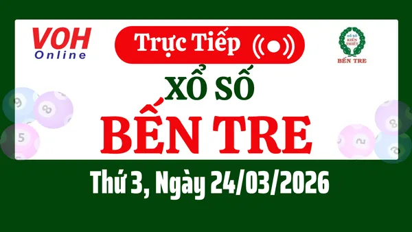 Xổ số Bến Tre hôm nay 24/3/2026 được cập nhật trực tiếp lúc 16h10 từ trường quay.