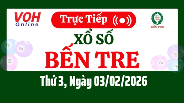 Xổ số Bến Tre hôm nay 3/2/2026 được cập nhật trực tiếp lúc 16h10 từ trường quay.