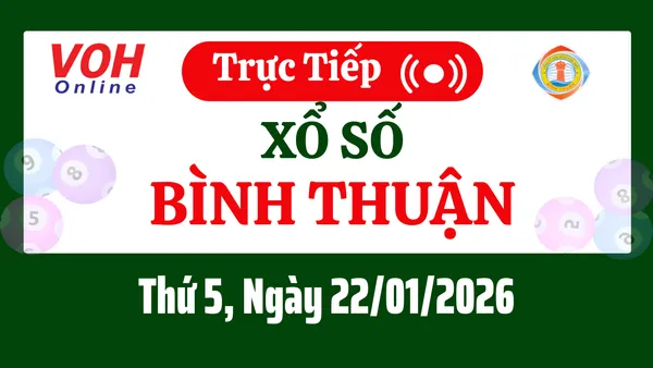 Xổ số Bình Thuận hôm nay 22/1/2026 được cập nhật trực tiếp lúc 16h10 từ trường quay.