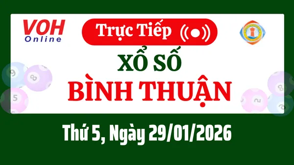 Xổ số Bình Thuận hôm nay 29/1/2026 được cập nhật trực tiếp lúc 16h10 từ trường quay.