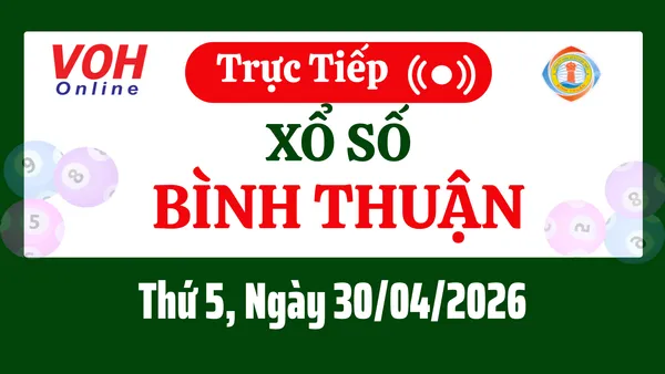 Xổ số Bình Thuận hôm nay 30/4/2026 được cập nhật trực tiếp lúc 16h10 từ trường quay.
